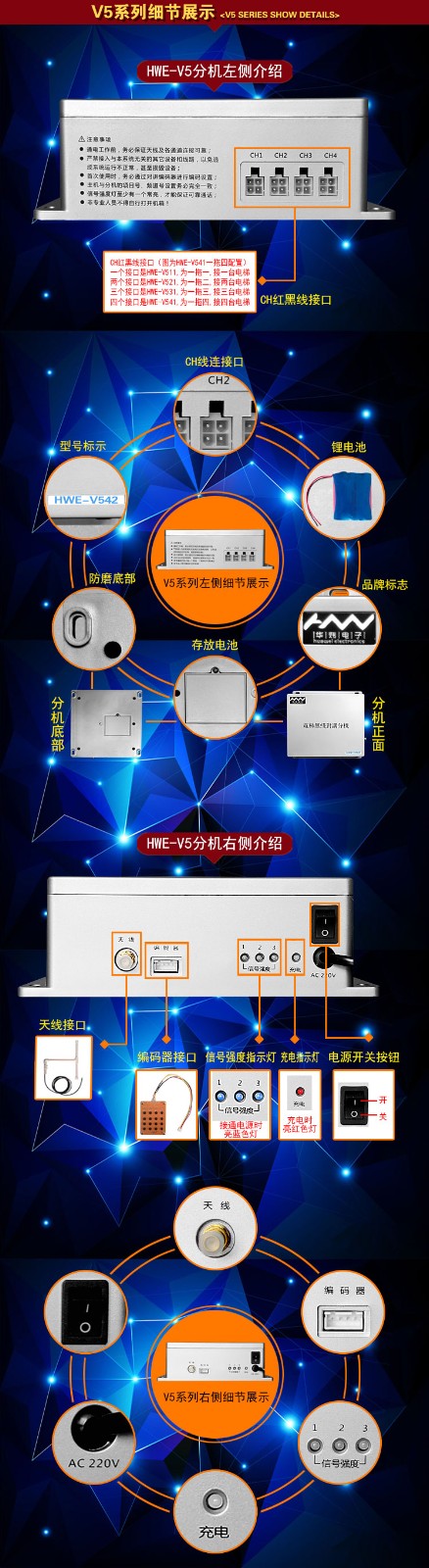 HWE-V5型采用了先進的編程微芯片技術,特別根據用戶使用習慣進行優化設計,我們相信這個易于使用的無線對講系統將給你帶來穩定可靠的通訊保障。